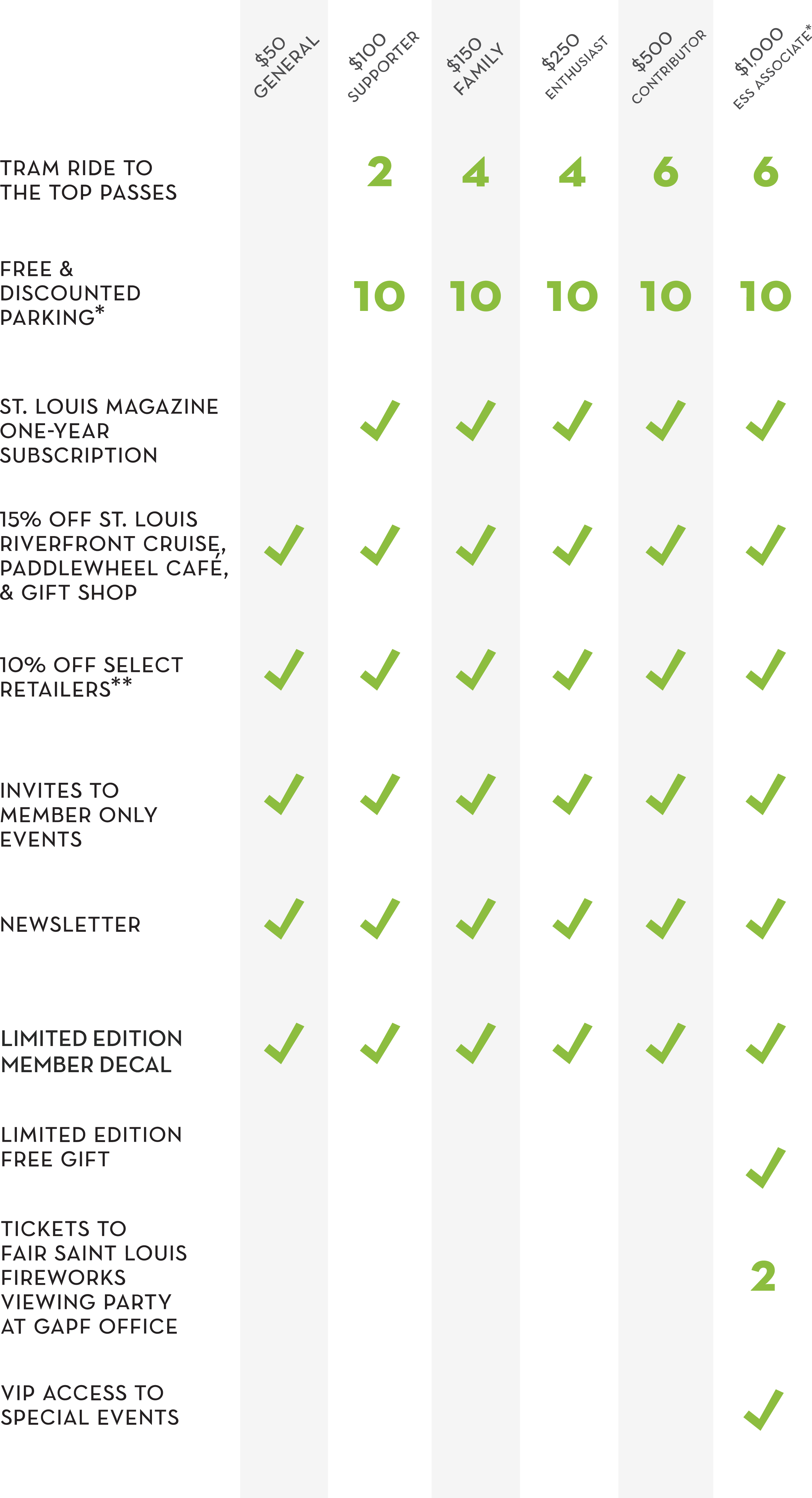 Monthly giving is an easy and effective way to support the mission of Gateway Arch Park Foundation. As a sustaining donor your annual membership will be charged in smaller monthly increments while you enjoy all the benefits of membership. Your generous investment in Gateway Arch Park Foundation provides resources for conservation, education, and community engagement programming throughout the park.